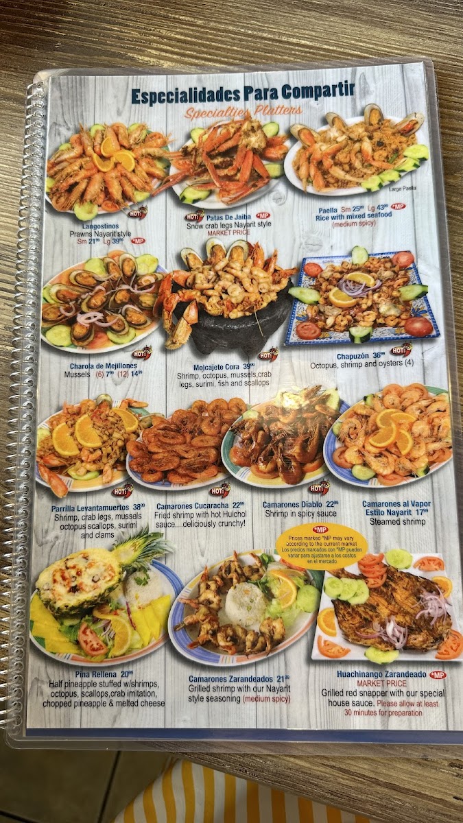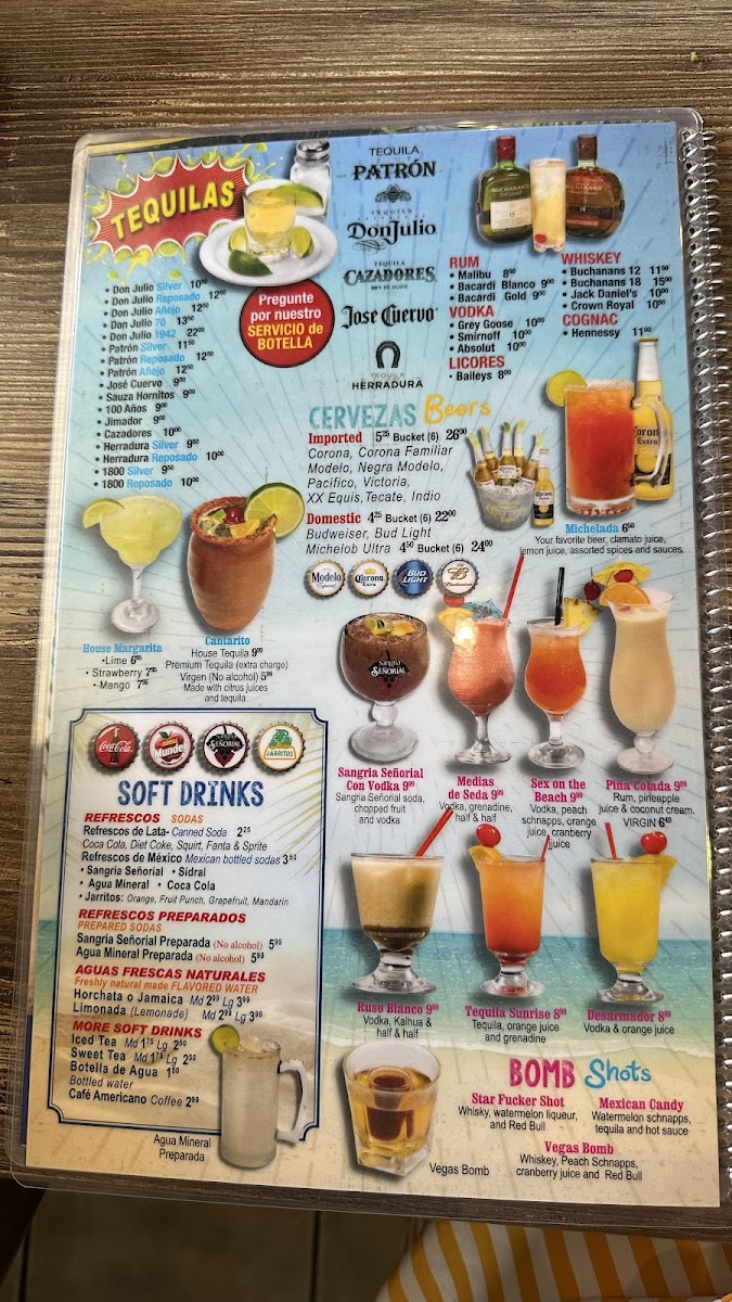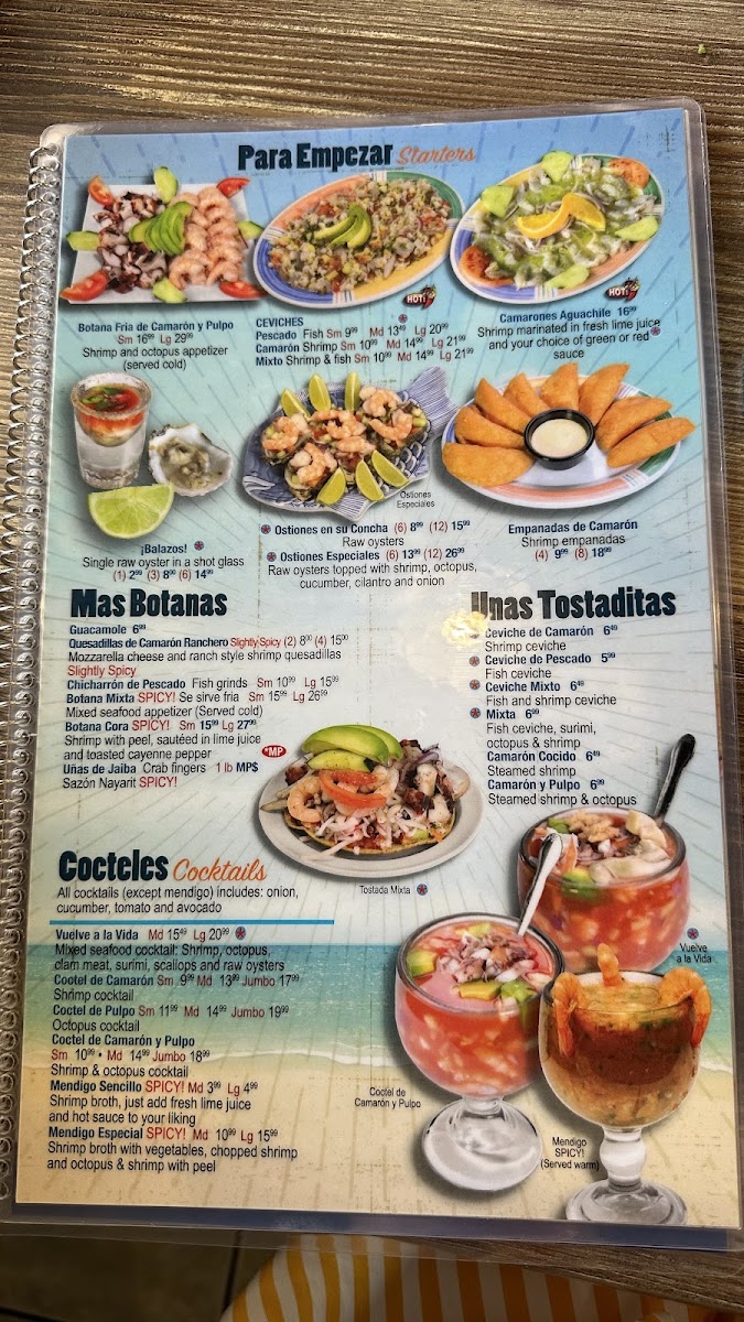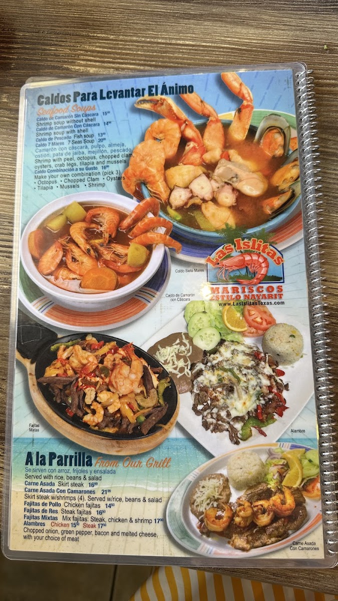 Las Islitas #2 offers a diverse and vibrant menu that showcases a wide range of seafood dishes, perfect for those craving authentic coastal flavors. For lighter bites, try the Unas Tostaditas with options like Ceviche Mixto, Camarón Y Pulpo, or Ceviche De Pescado, all offering a fresh and tangy experience. If you’re in the mood for something heartier, the Mas Botanas section includes tasty choices such as Quesadillas De Camarón Ranchero and Chicharrón De Pescado. The Cocteles / Cocktails selection is a standout, with refreshing options like the Coctel De Camarón and the flavorful Mendigo Especial. For those who enjoy a more substantial seafood meal, the Nuestros Platillos / Seafood Dishes section presents delicious dishes like Camarónes Diablos and Filete Empapelado. If you're just starting your meal, the Para Empezar / Starters offers small, medium, and large Ceviches and Camarónes Aguachile. The menu also has enticing platters like Pasta Con Camarónes and Camarónes Al Ajo, as well as indulgent Filete De Pescado Relleno. With a variety of prices and flavor combinations, Las Islitas #2 is a perfect spot for those craving fresh seafood in a casual setting.
